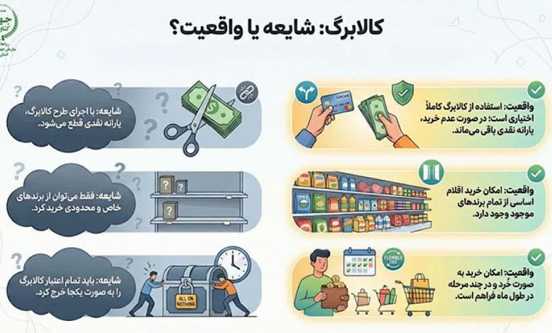 در این اطلاعیه تصریح شده که شایعاتی مبنی بر اینکه با دریافت کالابرگ، یارانه نقدی قطع میشود صحت ندارد و یارانه نقدی هموطنانی که مشمول آن بودند، هر ماه طبق معمول واریز خواهد شد.