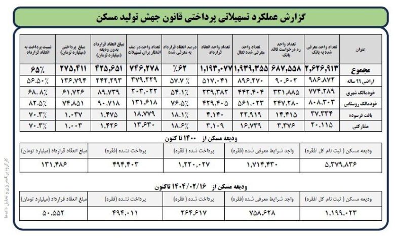 گزارش عملکرد تسهیلات پرداختی قانون جهش تولید مسکن نشان داد؛