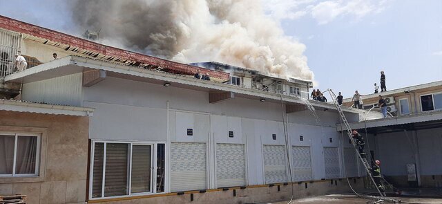 مأموران آتش‌نشانی در حال تلاش برای اطفاء آتش هستند.هنوز ابعاد دقیق و علت حادثه مشخص نیست.